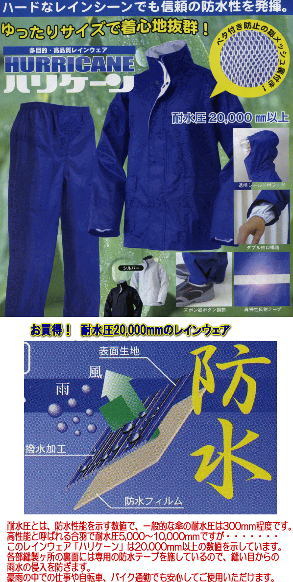 【即納】レインウェア 上下セット ビッグサイズ 6L 7L(レインコート ハリケーンレインスーツ 雨合羽 合羽 雨具 かっぱ カッパ 大きいサイズ ビック 自転車 メンズ 釣り 防水 通勤 通学 上下組 台風)