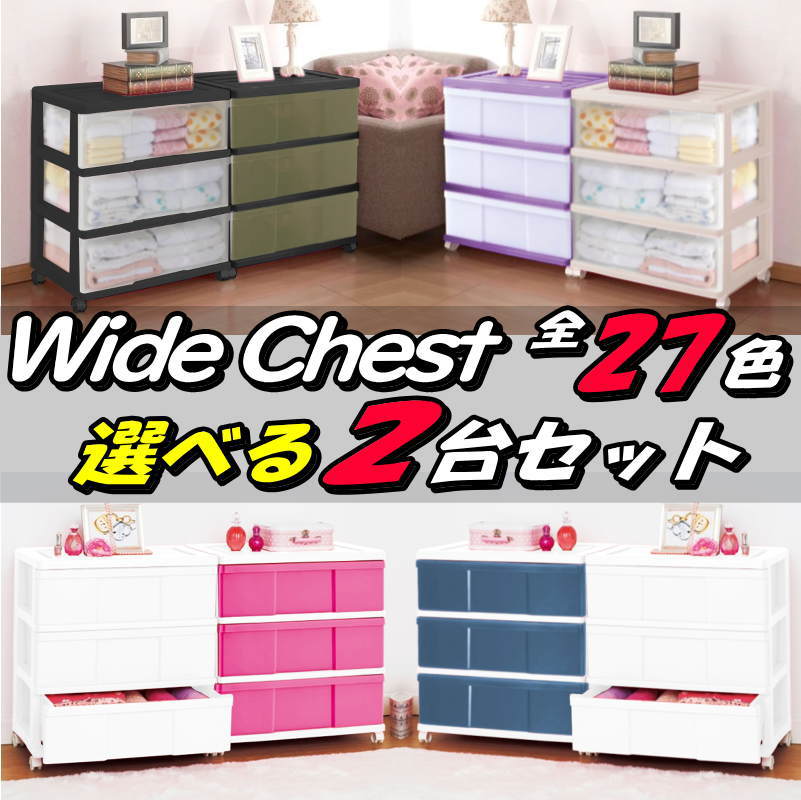 【送料無料】全27色から選べるカラーセット2台組 衣装ケース プラスチック 引き出し ワイド チェスト 3段 2個組 収納ケース 収納ボックス 幅60 奥行40 高さ66cm おしゃれ キャスター付き 日本製 詳しく見る