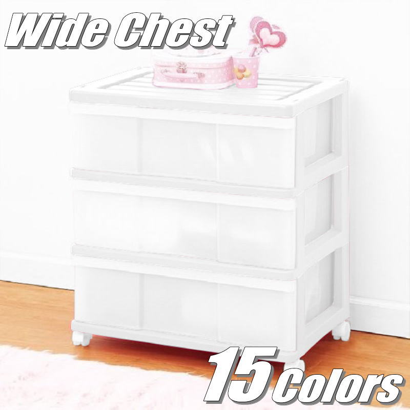 【送料無料】全15色 カラーボックス 収納ケース 衣装ケース プラスチック 引き出し ワイドチェスト 3段 幅60 奥行40 高さ66cm カラフル おしゃれ ピンク キャスター付き 日本製 詳しく見る