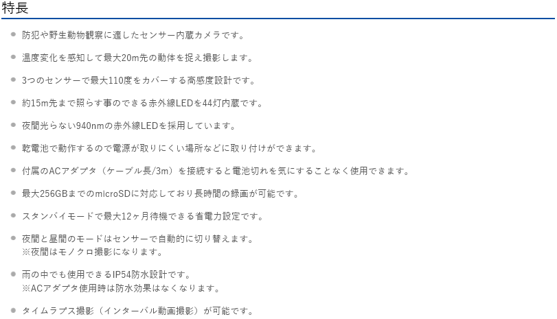 Point! ● 暗闇でも撮影できる赤外線センサー内蔵のセキュリティカメラ