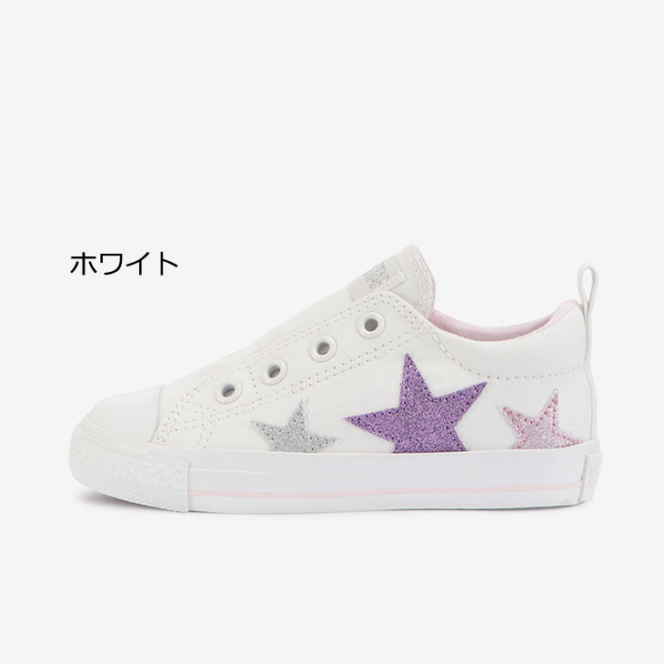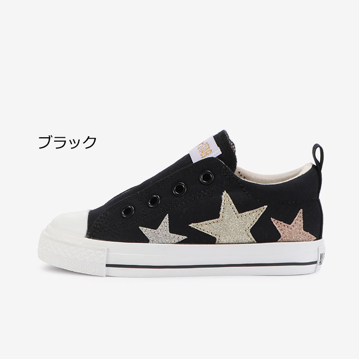 ギフト対応 ※メーカー希望小売価格はメーカーサイトに基づいて掲載しています (記載価格が税抜き価格になっている場合もございます)【コンバース converse / キッズ / スニーカー】 ◆ 商 品 説 明 ◆ □□□当店で販売しております商品はすべて【正規取扱品】です□□□ コンバース (CONVERSE) キッズ・ジュニアスニーカー [CHILD ALL STAR N GLITTERSTAR SLIP OX]です。