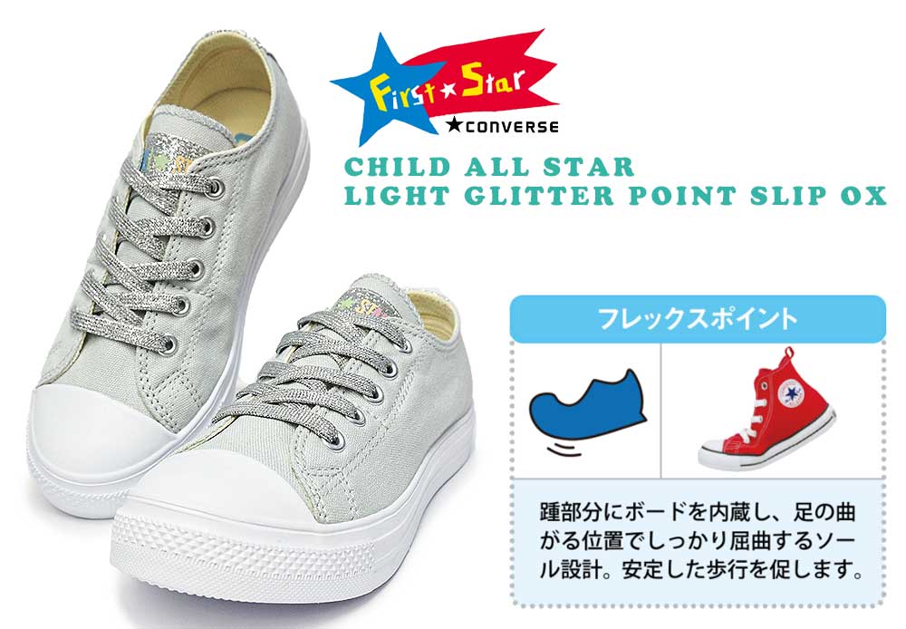)かかとの厚み:約2cm生産国:ベトナムコンバース 子供 スニーカー グリッター キラキラ ブラック グレー 軽量 2WAYCD AS LIGHT GP OXCONVERSE CHILD ALL STAR LIGHT GLITTERPOINT SLIP OX【smtb-TK】Color Variation ブラック グレー